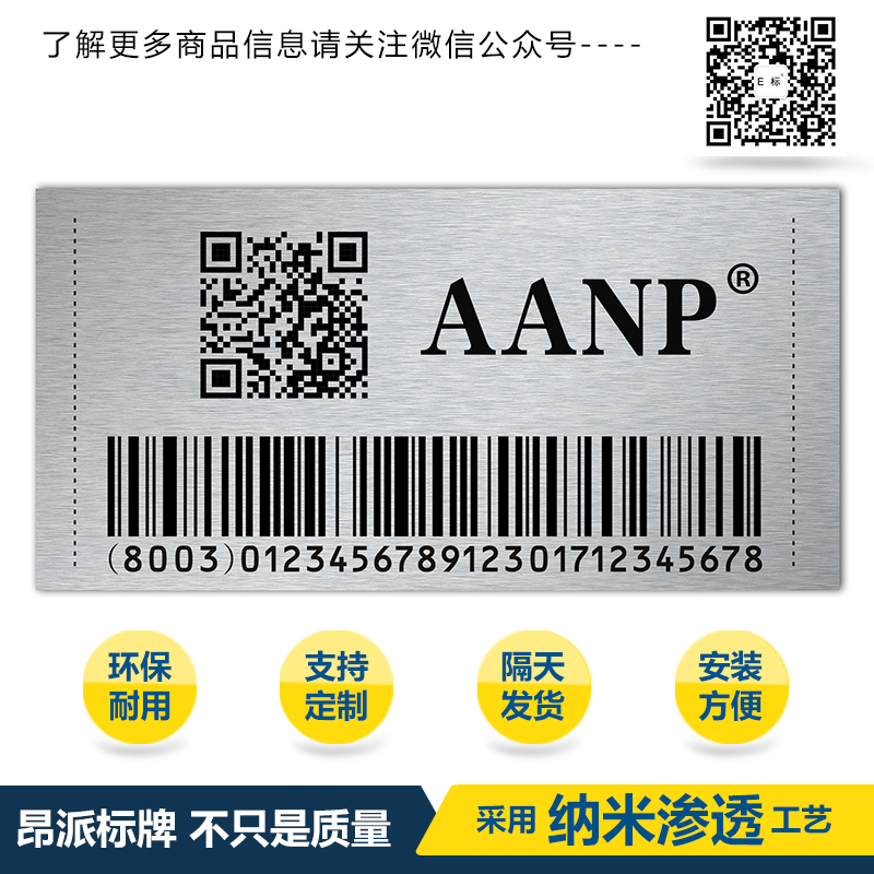 科技公司條碼牌 時(shí)間:2018-05-21 16:51:05 分類:金屬條碼 瀏覽:次 金屬二維碼采取高科技印刷工藝以及質(zhì)量?jī)?yōu)勢(shì): 金屬二維碼---進(jìn)口鋁板---高科技德國(guó)印刷技術(shù)---耐摩擦,耐溶劑,耐高溫,抗摩擦,耐紫外線,耐化學(xué)品性,耐腐蝕性,滲透印刷技術(shù)做出來(lái)的金屬二維碼使用壽命久不易掉色,金屬二維碼識(shí)別率快,掃描識(shí)別率高,并能保持光潔。 分享收藏: 上一個(gè): 車輛條碼牌 下一個(gè): 石油二維碼 相關(guān)產(chǎn)品