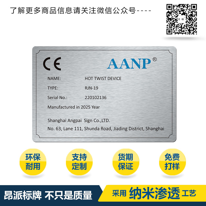 自動化設(shè)備鋁標(biāo)牌 時間:2025-05-07 10:29:37 分類:陽極氧化銘牌 瀏覽:次 我司長期備有進口的生產(chǎn)原材料,和一批高素質(zhì)的專業(yè)生產(chǎn)隊伍,細(xì)致精密的操作流程及現(xiàn)代化的管理體系,對你的需求我們有絕對的信心做好。昂派標(biāo)牌”將不斷努力創(chuàng)造出更高品質(zhì)的銘牌,為用戶提供更佳服務(wù),努力做到你最滿意的合作伙伴。 分享收藏: 上一個: 設(shè)備信息陽極氧化鋁牌 下一個: 陽極氧化指示小標(biāo)牌 相關(guān)案例